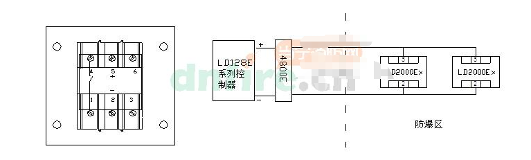 五、J-SAB-M-LD2000E(Ex)端子圖與接線圖示例: